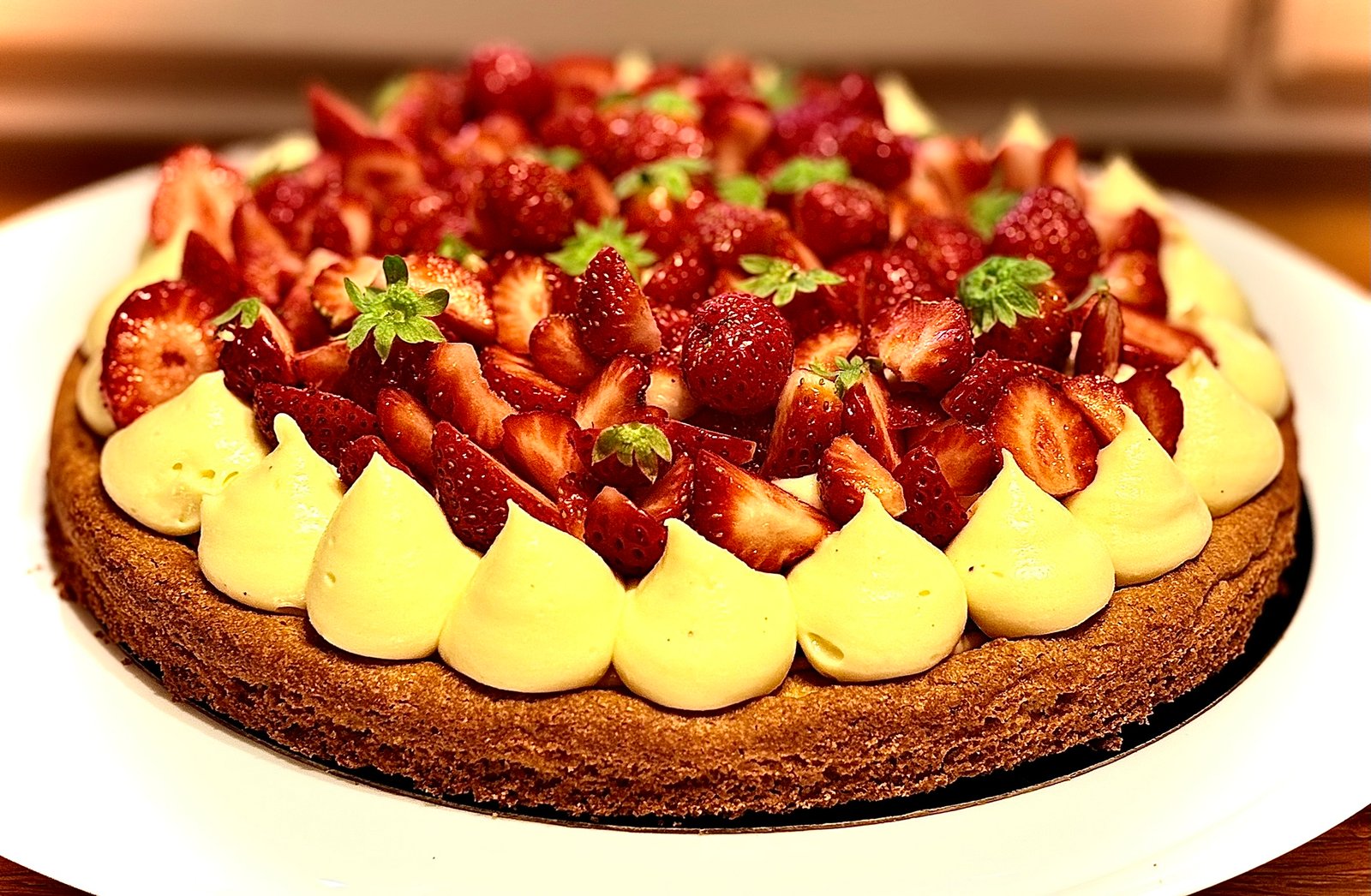 Sous le croustillant doré du sablé breton se dépose la douceur soyeuse d’une crème diplômate à la vanille de Madagascar. Les fraises, éclatantes et parfumées, s’y posent comme des joyaux, pour une gourmandise aussi élégante que délicieuse.